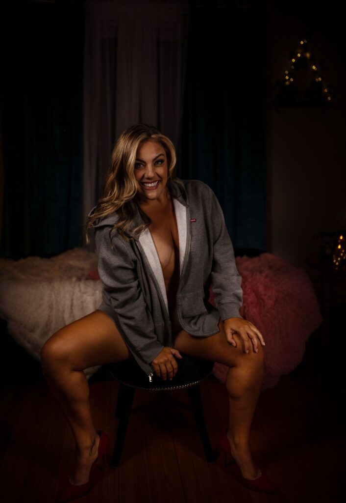 Your photoshoot takes place in a cozy Manchester NH boudoir studio with soft light, music, and gentle direction. You are never alone in the process. Every detail is handled with care.
